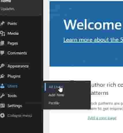 - Users: If you hover you mouse to the users panel, three panels will be expanded (All Users, Add New, and Profile)